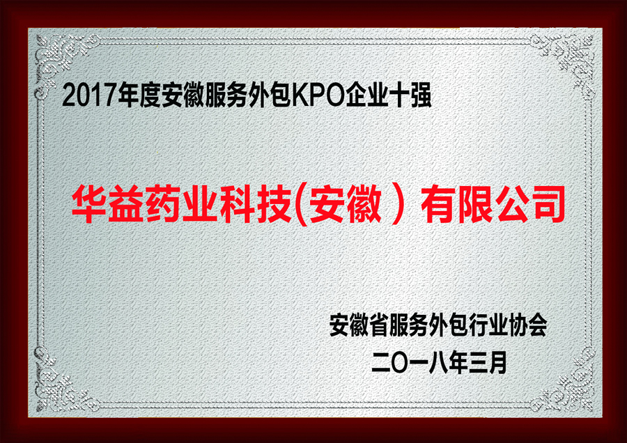 2017年度安徽省服務(wù)外包KPO企業(yè)十強